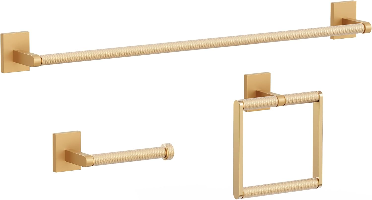 Bathroom Hardware Set includes 24-inch towel bar/rack, toilet paper holder and towel ring to create stylish space and practical bathroom storage